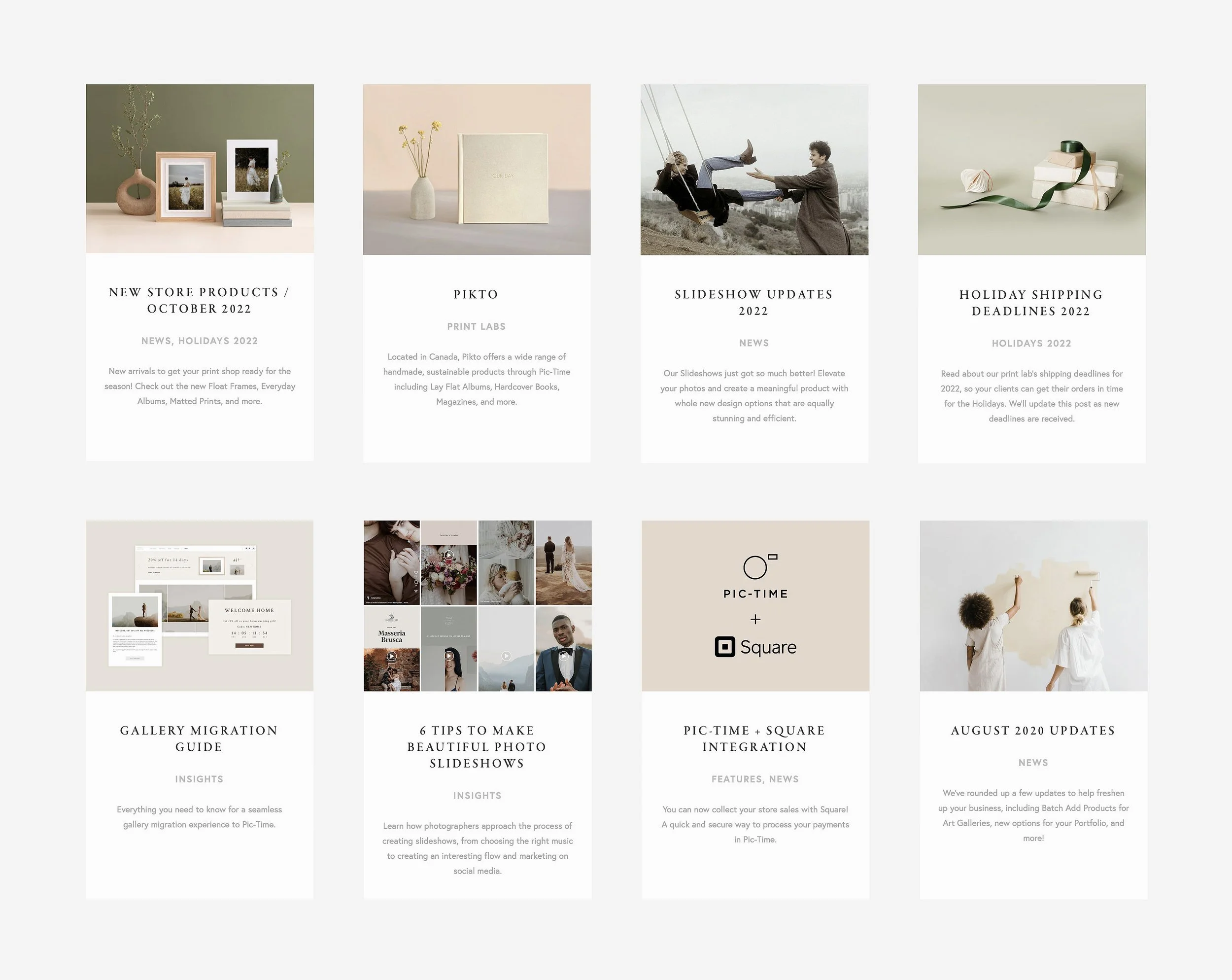 Variety of campaigns, visuals, and ads establishing the Pic-Time brand language and style.